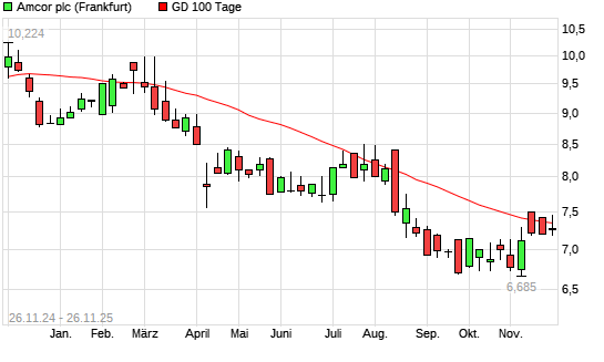 Mit dem Anstieg auf 7,45 EUR hat die Amcor Plc-Aktie am 25.11.2025 die 100-Tage-Linie nach oben gekreuzt.