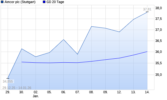 Mit dem Rücksetzer auf 36,01 EUR hat die Amcor Plc-Aktie am 23.01.2026 die 20-Tage-Linie nach unten gekreuzt.