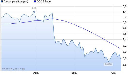 Mit dem Rücksetzer auf 6,91 EUR hat die Amcor Plc-Aktie am 06.10.2025 die 38-Tage-Linie nach unten gekreuzt.
