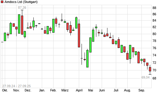 Mit dem Rücksetzer auf 69,12 EUR hat die Amdocs-Aktie (ISIN GB0022569080) am 26.09.2025 ein neues 12-Monats-Tief erreicht und damit den Kurs vom 24.09.2025 eingestellt.