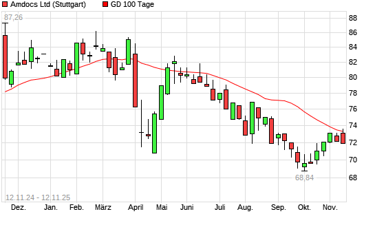 Mit dem Anstieg auf 73,46 EUR hat die Amdocs-Aktie am 11.11.2025 die 100-Tage-Linie nach oben gekreuzt.