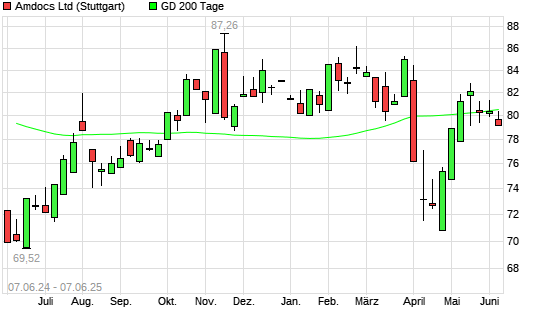 Mit dem Anstieg auf 80,36 EUR hat die Amdocs-Aktie am 06.06.2025 die 200-Tage-Linie nach oben gekreuzt.