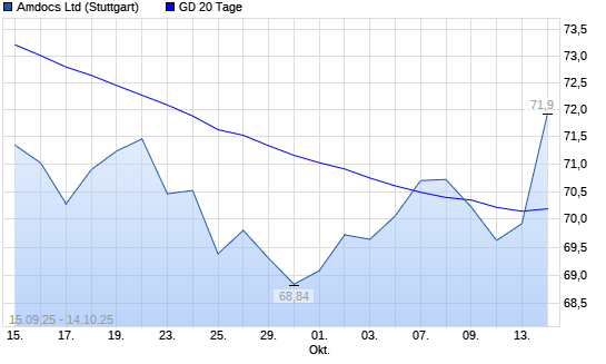 Mit dem Rücksetzer auf 70,02 EUR hat die Amdocs-Aktie am 13.10.2025 die 20-Tage-Linie nach unten gekreuzt.