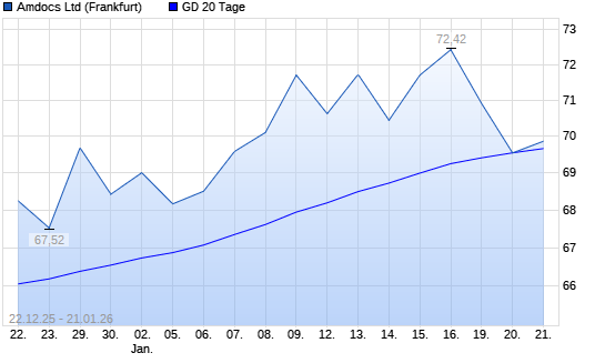Mit dem Rücksetzer auf 69,54 EUR hat die Amdocs-Aktie am 20.01.2026 die 20-Tage-Linie nach unten gekreuzt.