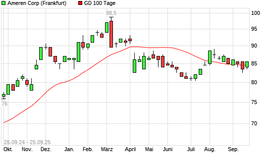 Mit dem Anstieg auf 85,00 EUR hat die Ameren-Aktie am 24.09.2025 die 100-Tage-Linie nach oben gekreuzt.
