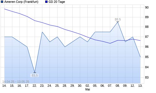 Mit dem Anstieg auf 87,00 EUR hat die Ameren-Aktie am 12.05.2025 die 20-Tage-Linie nach oben gekreuzt.