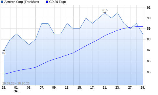Mit dem Anstieg auf 89,50 EUR hat die Ameren-Aktie am 28.10.2025 die 20-Tage-Linie nach oben gekreuzt.