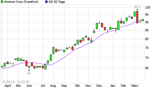 Mit dem Anstieg auf 92,00 EUR hat die Ameren-Aktie am 20.03.2025 die 50-Tage-Linie nach oben gekreuzt.