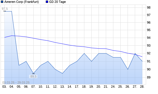Mit dem Rücksetzer auf 91,00 EUR hat die Ameren-Aktie am 28.03.2025 die 20-Tage-Linie nach unten gekreuzt.