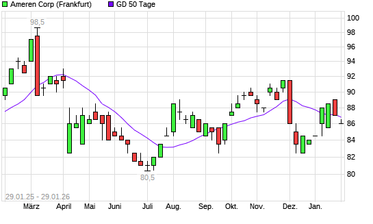 Mit dem Rücksetzer auf 86,00 EUR hat die Ameren-Aktie am 28.01.2026 die 50-Tage-Linie nach unten gekreuzt.