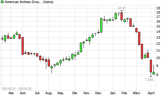 Mit dem Rücksetzer auf 8,19 EUR hat die American Airlines-Aktie (ISIN US02376R1023) am 08.04.2025 ein neues 3-Jahres-Tief erreicht und damit den Kurs vom 07.08.2024 eingestellt.