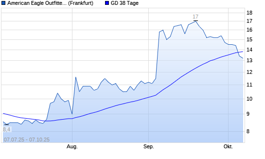 Mit dem Rücksetzer auf 13,40 EUR hat die American Eagle Outfitters-Aktie am 06.10.2025 die 38-Tage-Linie nach unten gekreuzt.