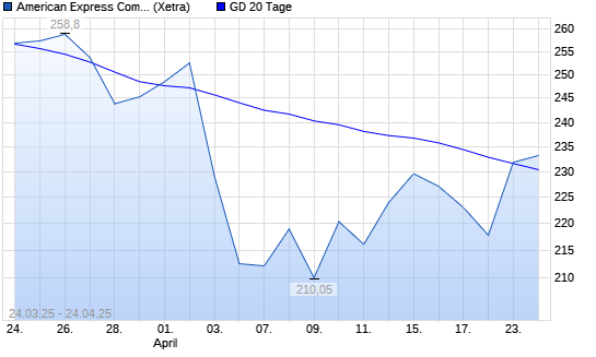 Mit dem Anstieg auf 231,35 EUR hat die American Express-Aktie am 23.04.2025 die 20-Tage-Linie nach oben gekreuzt.