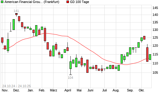 Mit dem Anstieg auf 114,00 EUR hat die American Financial Group-Aktie am 23.10.2025 die 100-Tage-Linie nach oben gekreuzt.