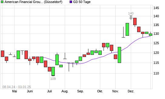 Mit dem Anstieg auf 132,00 EUR hat die American Financial Group-Aktie am 02.01.2025 die 50-Tage-Linie nach oben gekreuzt.