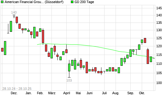 Mit dem Rücksetzer auf 114,00 EUR hat die American Financial Group-Aktie am 27.10.2025 die 200-Tage-Linie nach unten gekreuzt.