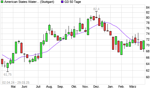 Mit dem Anstieg auf 71,00 EUR hat die American States Water-Aktie am 28.03.2025 die 50-Tage-Linie nach oben gekreuzt.