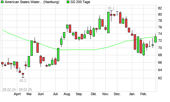 Mit dem Rücksetzer auf 73,00 EUR hat die American States Water-Aktie am 27.02.2025 die 200-Tage-Linie nach unten gekreuzt.