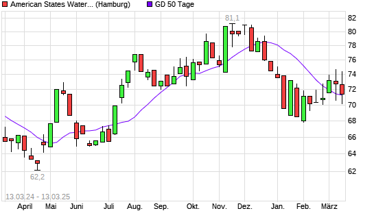 Mit dem Rücksetzer auf 70,85 EUR hat die American States Water-Aktie am 12.03.2025 die 50-Tage-Linie nach unten gekreuzt.