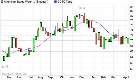 Mit dem Rücksetzer auf 68,30 EUR hat die American States Water-Aktie am 07.04.2025 die 50-Tage-Linie nach unten gekreuzt.