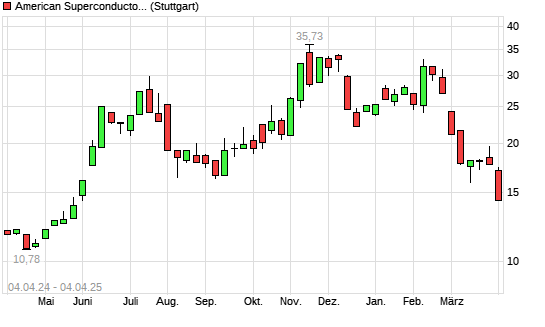 Mit dem Rücksetzer auf 15,94 EUR hat die American Superconductor-Aktie (ISIN US0301112076) am 03.04.2025 ein neues 6-Monats-Tief erreicht und damit den Kurs vom 11.03.2025 eingestellt.