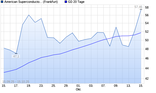 Mit dem Anstieg auf 52,26 EUR hat die American Superconductor-Aktie am 14.10.2025 die 20-Tage-Linie nach oben gekreuzt.