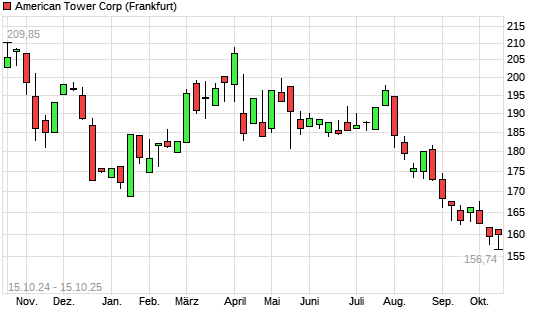 Mit dem Rücksetzer auf 156,74 EUR hat die American Tower-Aktie (ISIN US03027X1000) am 14.10.2025 ein neues 12-Monats-Tief erreicht und damit den Kurs vom 07.10.2025 eingestellt.