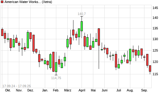 Mit dem Rücksetzer auf 115,25 EUR hat die American Water Works-Aktie (ISIN US0304201033) am 16.09.2025 ein neues 6-Monats-Tief erreicht und damit den Kurs vom 15.09.2025 eingestellt.