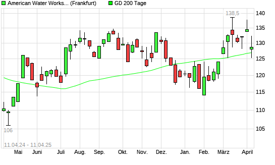 Mit dem Anstieg auf 127,80 EUR hat die American Water Works-Aktie am 10.04.2025 die 200-Tage-Linie nach oben gekreuzt.