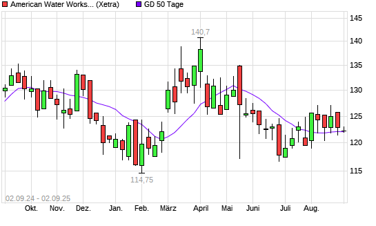 Mit dem Anstieg auf 122,05 EUR hat die American Water Works-Aktie am 01.09.2025 die 50-Tage-Linie nach oben gekreuzt.