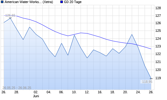 Mit dem Rücksetzer auf 120,00 EUR hat die American Water Works-Aktie am 25.06.2025 die 20-Tage-Linie nach unten gekreuzt.
