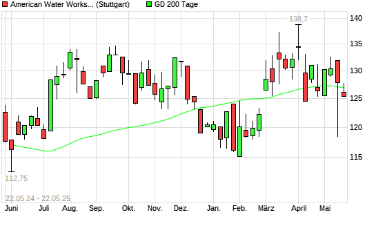 Mit dem Rücksetzer auf 126,60 EUR hat die American Water Works-Aktie am 21.05.2025 die 200-Tage-Linie nach unten gekreuzt.