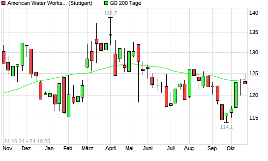 Mit dem Rücksetzer auf 123,50 EUR hat die American Water Works-Aktie am 23.10.2025 die 200-Tage-Linie nach unten gekreuzt.