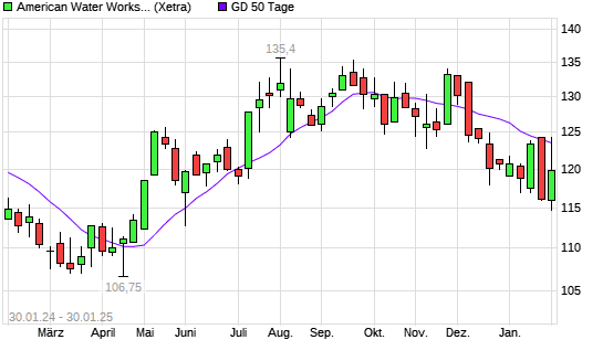 Mit dem Rücksetzer auf 119,05 EUR hat die American Water Works-Aktie am 29.01.2025 die 50-Tage-Linie nach unten gekreuzt.