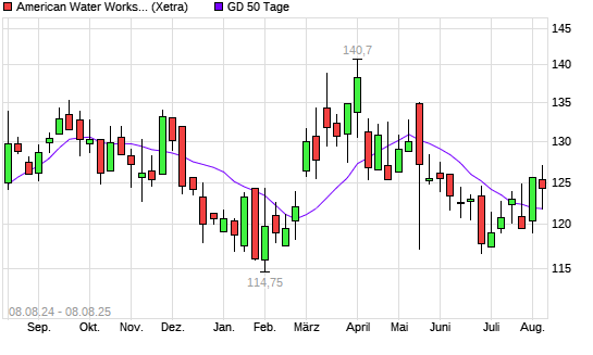 Mit dem Rücksetzer auf 121,25 EUR hat die American Water Works-Aktie am 07.08.2025 die 50-Tage-Linie nach unten gekreuzt.