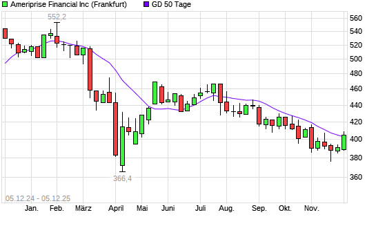Mit dem Anstieg auf 407,00 EUR hat die Ameriprise Financial-Aktie am 04.12.2025 die 50-Tage-Linie nach oben gekreuzt.