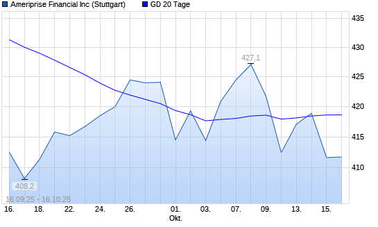 Mit dem Rücksetzer auf 412,40 EUR hat die Ameriprise Financial-Aktie am 15.10.2025 die 20-Tage-Linie nach unten gekreuzt.
