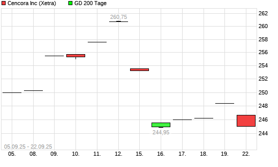 Mit dem Rücksetzer auf 242,30 EUR hat die AmerisourceBergen-Aktie am 23.09.2025 die 200-Tage-Linie nach unten gekreuzt.