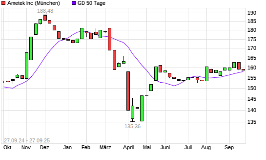 Mit dem Rücksetzer auf 157,14 EUR hat die Ametek-Aktie am 26.09.2025 die 50-Tage-Linie nach unten gekreuzt.