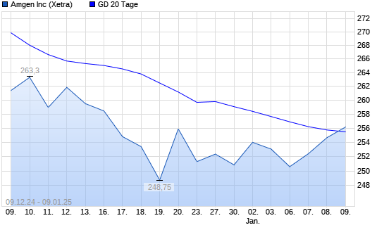 Mit dem Anstieg auf 254,10 EUR hat die Amgen-Aktie am 08.01.2025 die 20-Tage-Linie nach oben gekreuzt.