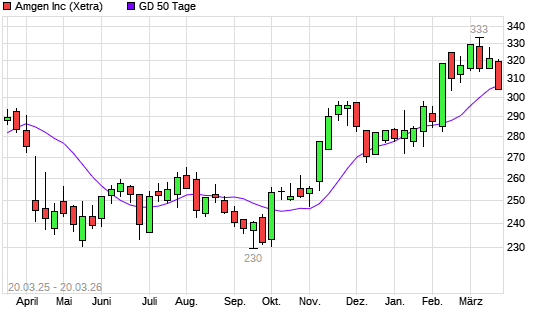 Mit dem Rücksetzer auf 305,00 EUR hat die Amgen-Aktie am 19.03.2026 die 50-Tage-Linie nach unten gekreuzt.