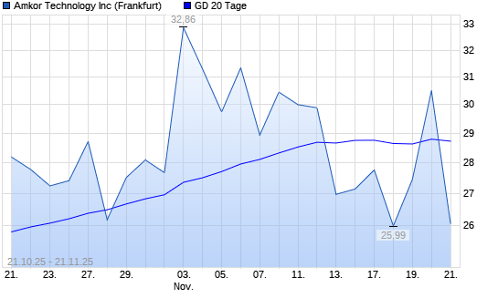 Mit dem Anstieg auf 30,50 EUR hat die Amkor-Aktie am 20.11.2025 die 20-Tage-Linie nach oben gekreuzt.