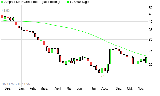 Mit dem Rücksetzer auf 22,09 EUR hat die Amphastar Pharmaceuticals-Aktie am 14.11.2025 die 200-Tage-Linie nach unten gekreuzt.