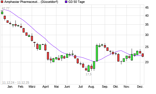 Mit dem Rücksetzer auf 21,55 EUR hat die Amphastar Pharmaceuticals-Aktie am 10.12.2025 die 50-Tage-Linie nach unten gekreuzt.