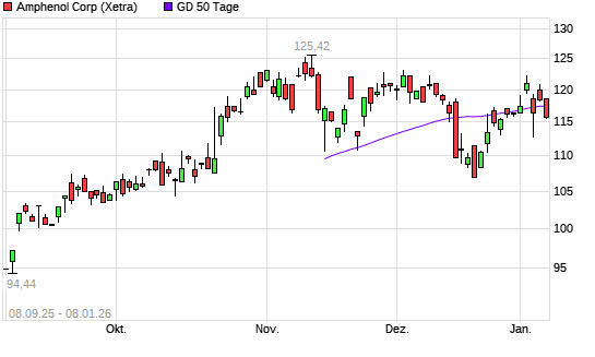 Mit dem Anstieg auf 118,40 EUR hat die Amphenol-Aktie am 07.01.2026 die 50-Tage-Linie nach oben gekreuzt.