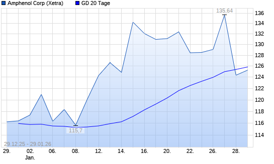 Mit dem Rücksetzer auf 121,46 EUR hat die Amphenol-Aktie am 28.01.2026 die 20-Tage-Linie nach unten gekreuzt.