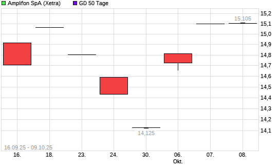 Mit dem Anstieg auf 14,98 EUR hat die Amplifon Milano-Aktie am 08.10.2025 die 50-Tage-Linie nach oben gekreuzt.