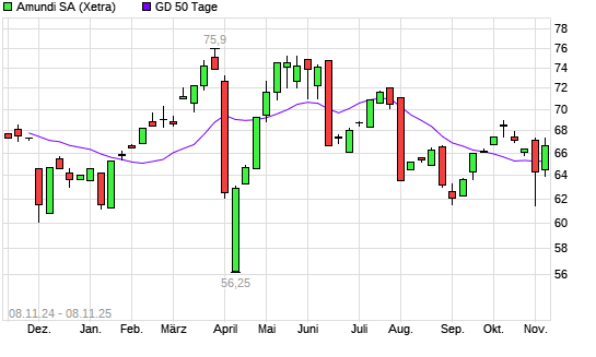 Mit dem Anstieg auf 66,30 EUR hat die Amundi-Aktie am 07.11.2025 die 50-Tage-Linie nach oben gekreuzt.