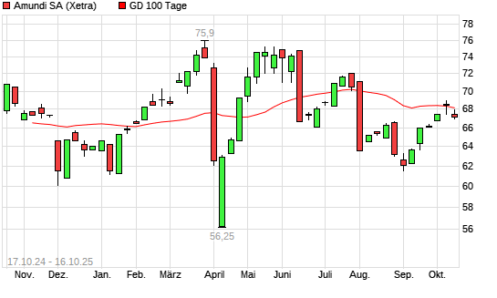 Mit dem Rücksetzer auf 66,65 EUR hat die Amundi-Aktie am 16.10.2025 die 100-Tage-Linie nach unten gekreuzt.
