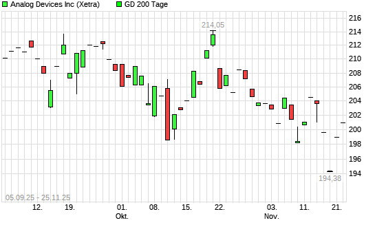 Mit dem Anstieg auf 200,60 EUR hat die Analog Devices-Aktie am 24.11.2025 die 200-Tage-Linie nach oben gekreuzt.